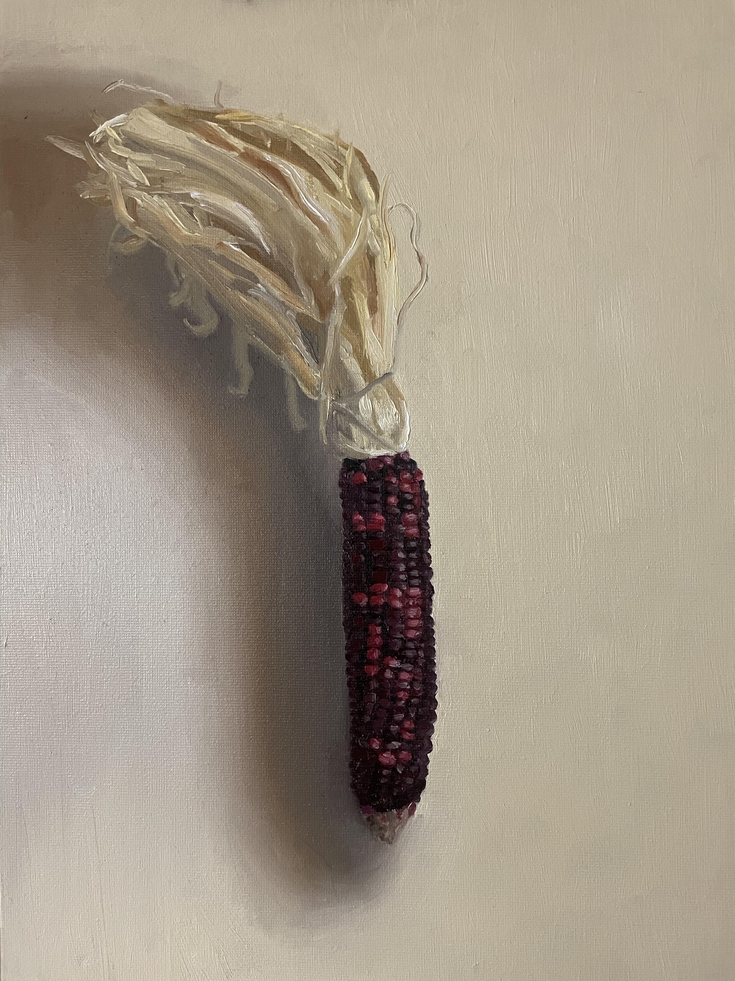 Oil. Painting of an ear of dried red corn from the fall farmer’s market.