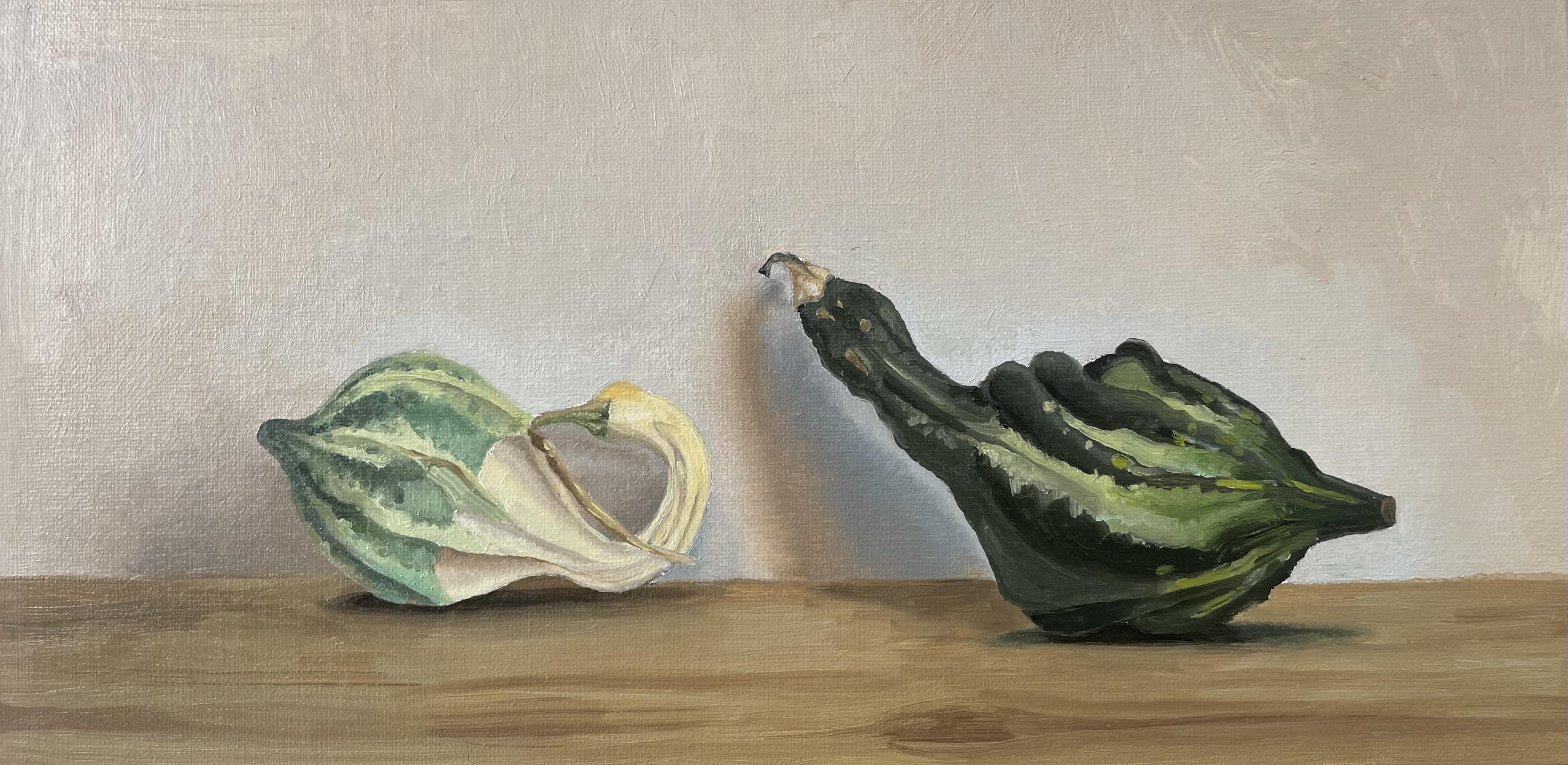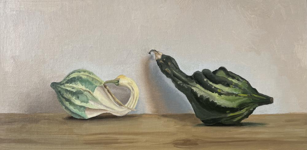Oil. Painting of two squashes from the fall farmer’s market.
